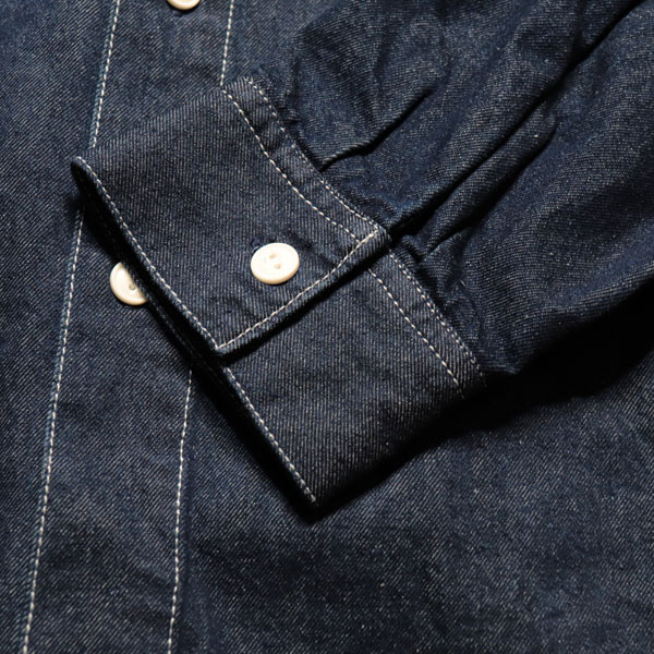 ベーシックなデザインのデニムシャツではない、一味違うデニムシャツです。