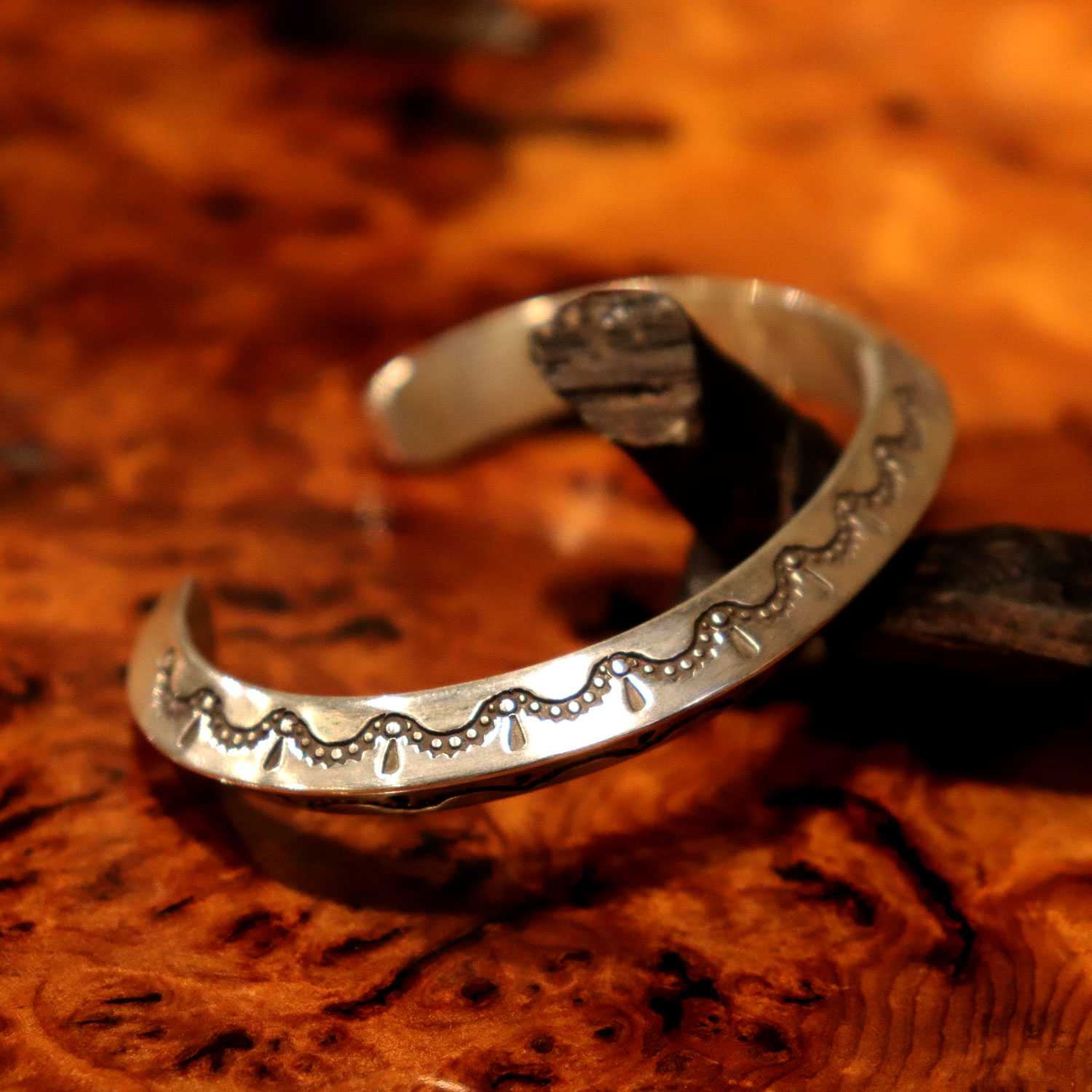 ヘビーゲージの重圧なトライアングルワイヤーに、スタンプワークを施した今作。