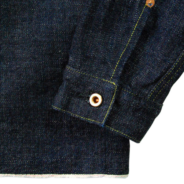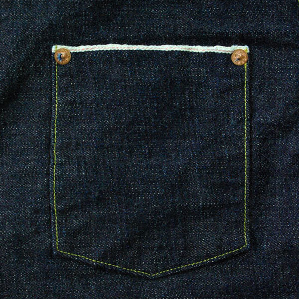 作業着として大量生産していたモデルですので、縫製工程は極力少なく、真鍮製のボタン、リベットでダーツをとめたり武骨なディテールに仕上がっております。