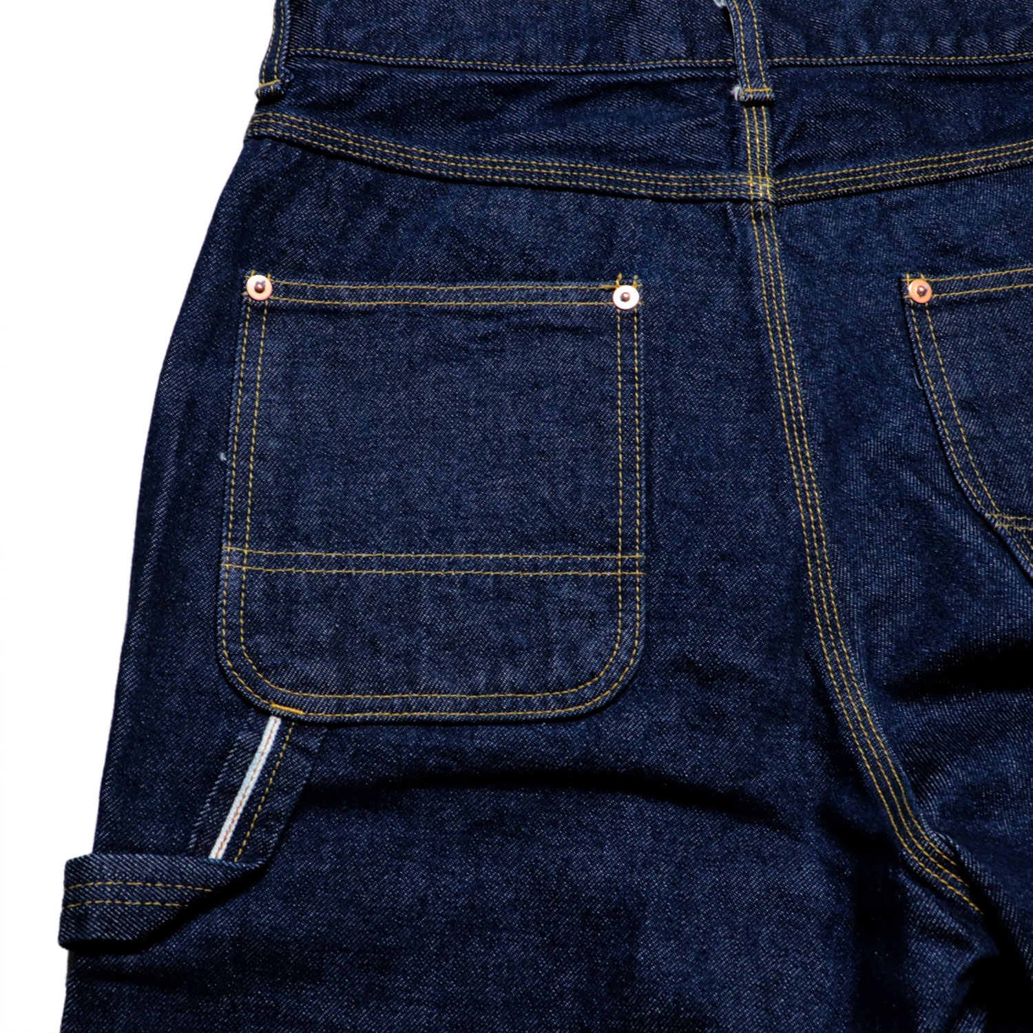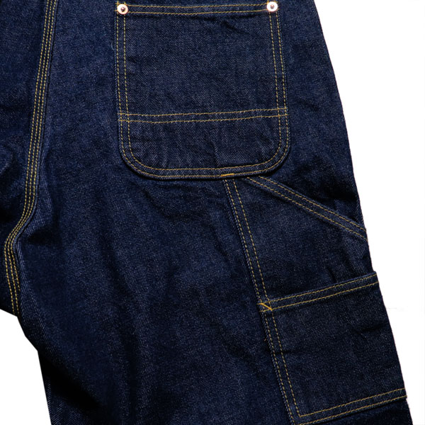 当時、ペンキ職人や画家が作業中に必要な道具を持ち運びやすくするために、ハンマーループやツールポケットなどがデザインに取り込まれ太ワークパンツ。