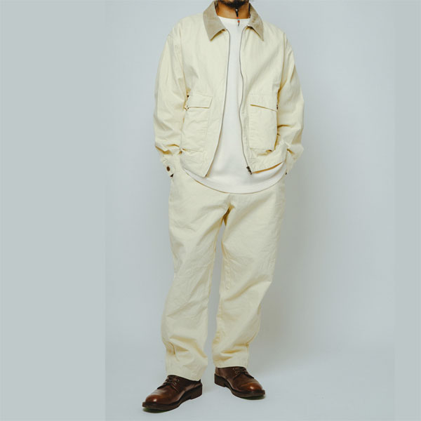 程よい厚みの生地は、ジャケット同様に馴染みの良さと経年変化を楽しめるのが魅力。
