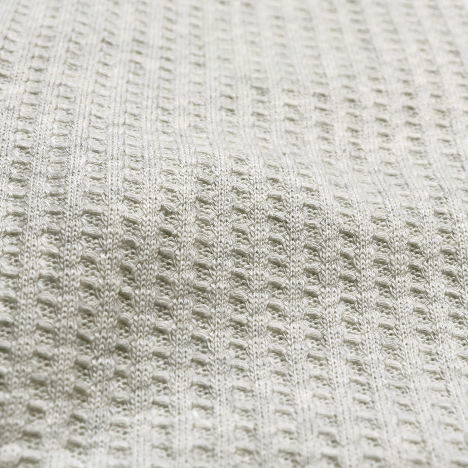 ヘビーでしっかりとしたワッフルは、耐熱性・吸水性・通気性に優れ、柔らかな肌触りの素材感。