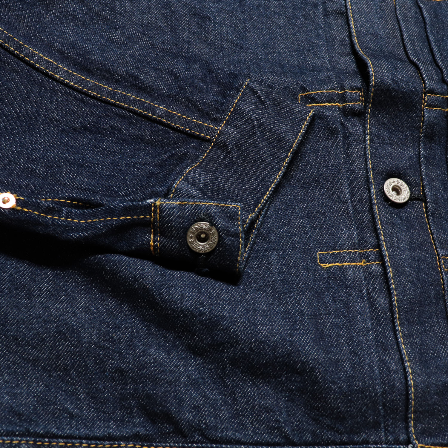 胸ポケットはフラップが排除され、銅リベット2点留めに。