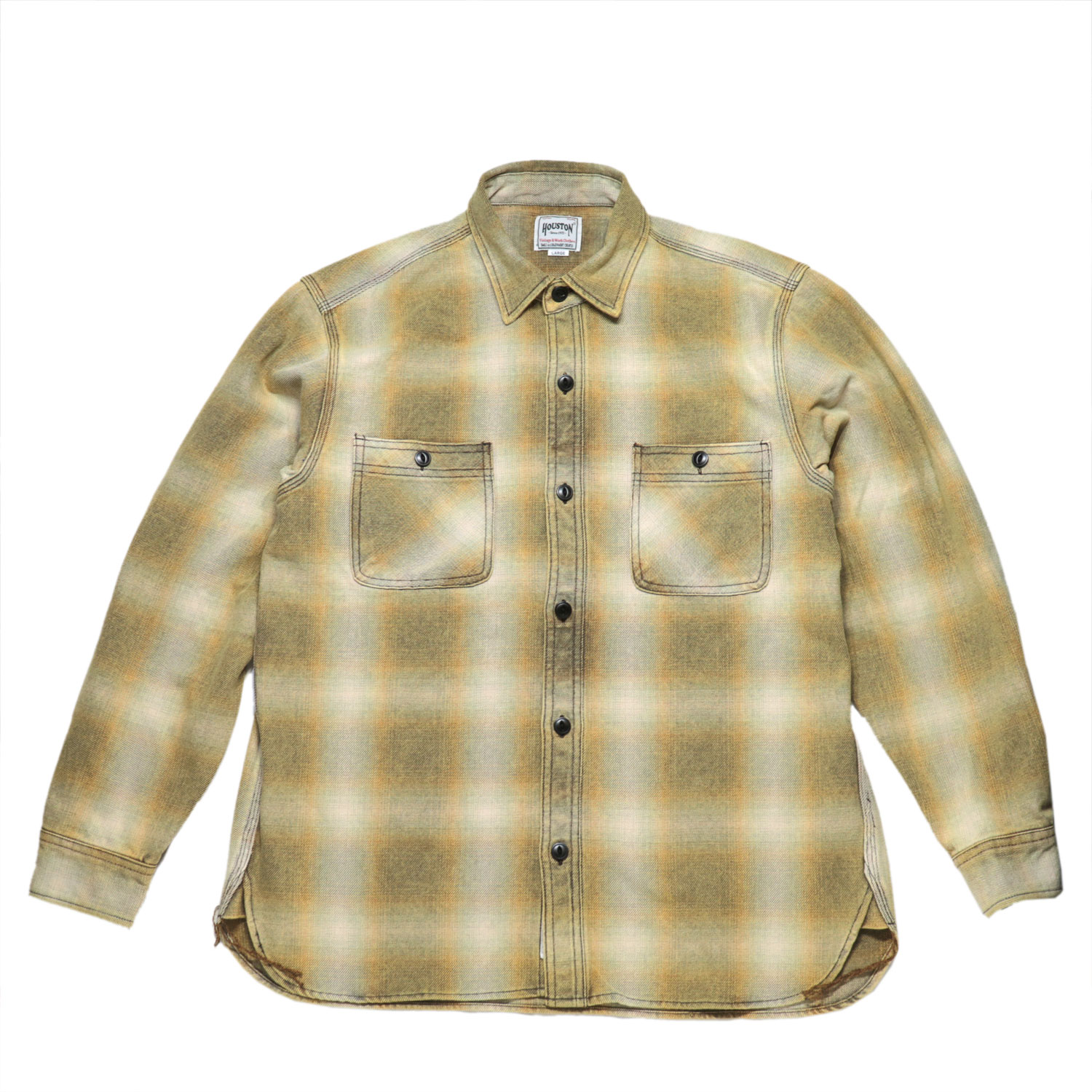 HOUSTON ヒューストン ビンテージ チェック ビエラ フランネル シャツ ネルシャツ カーキ