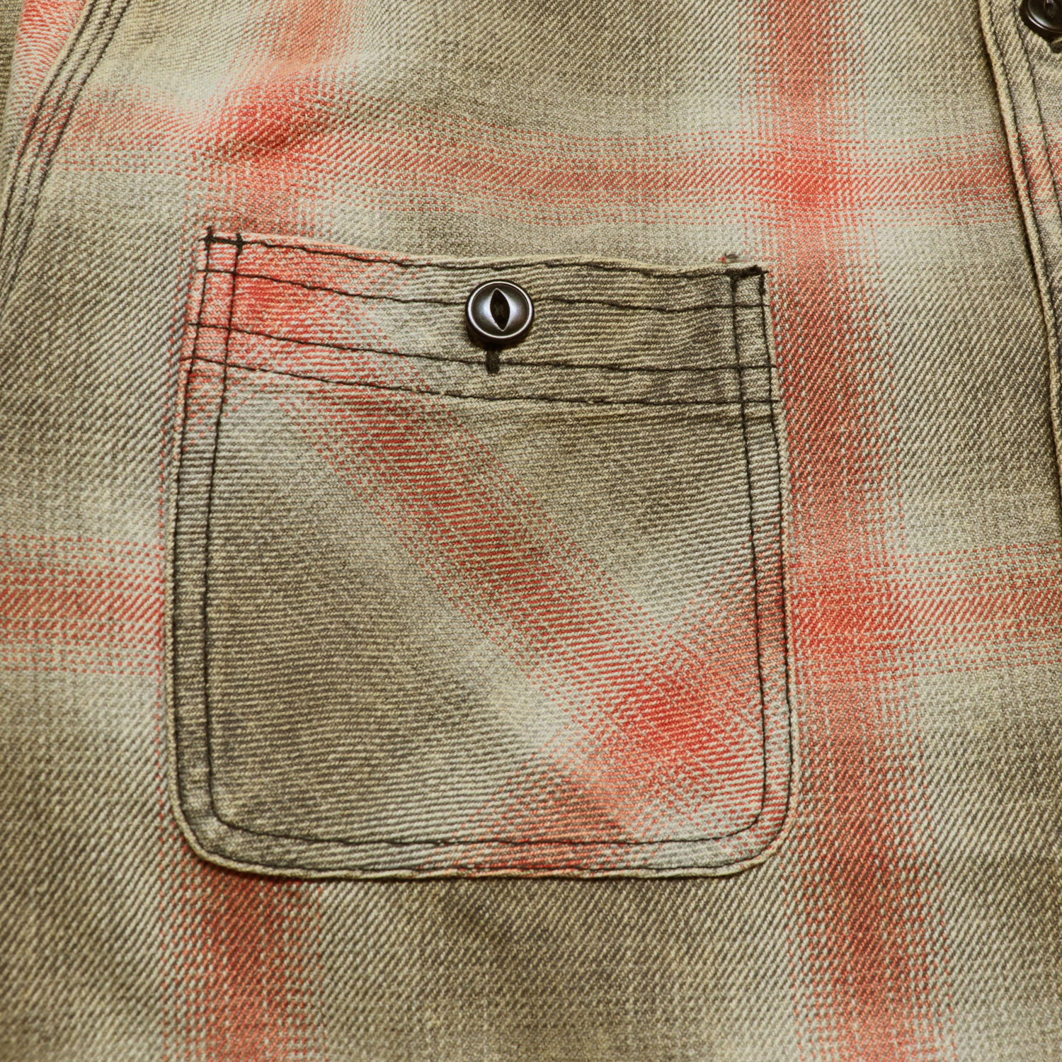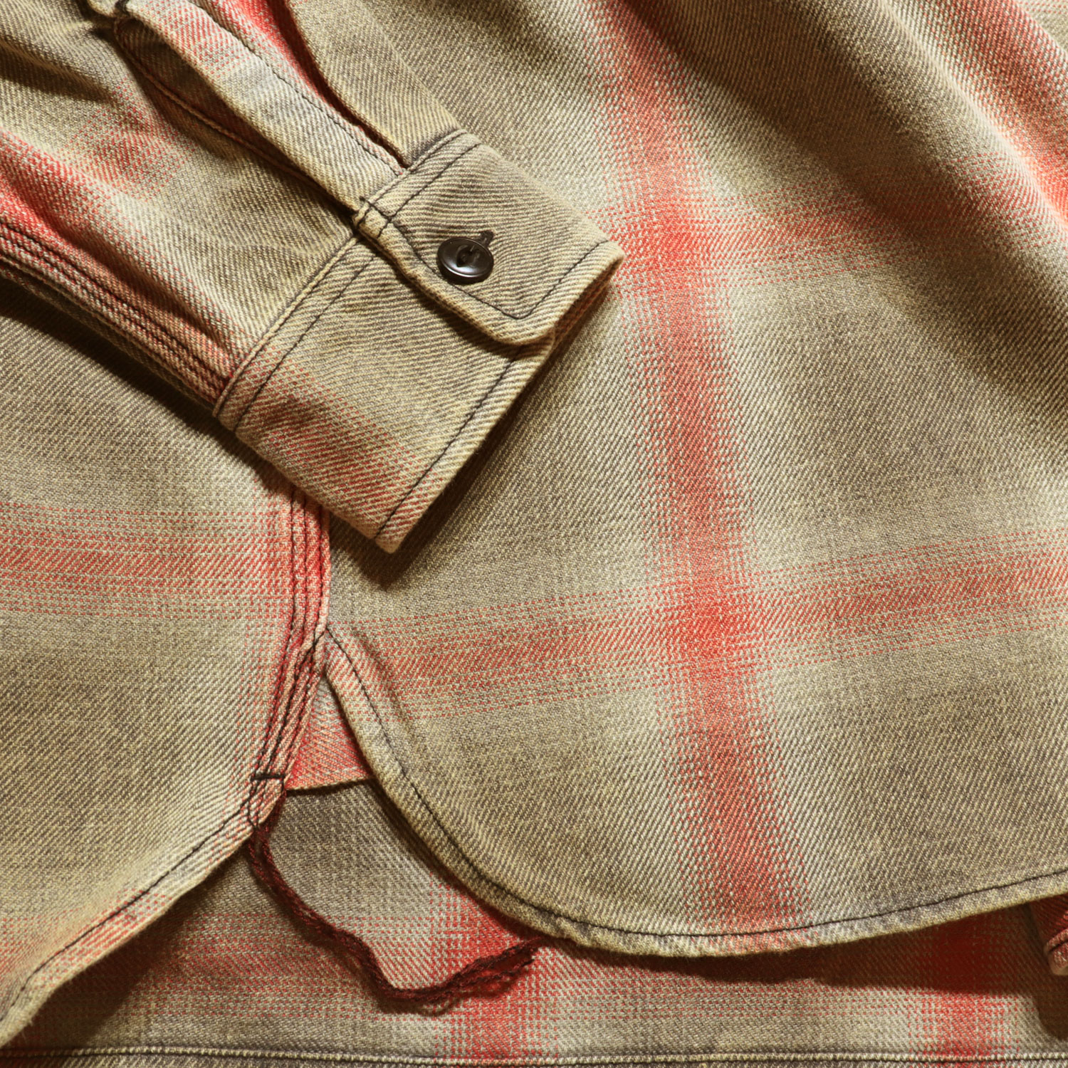 色が抜けたカスレ感の仕上がりが最高なビエラフランネルシャツ。