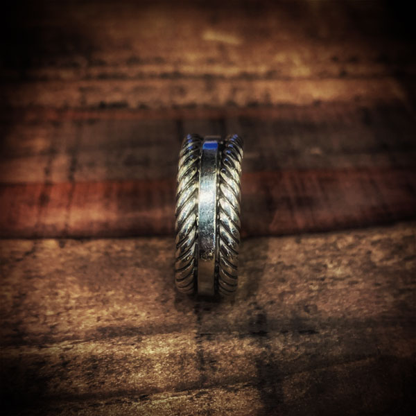 スクエアーワイヤーを、スティーブが得意とするケーブルワイヤーでサンドしたデザインは、上品で高級感あるリングに仕上がっています。
