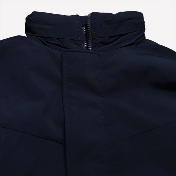 スタンドカラーにはフードが収納されており、機能性に優れた仕様。