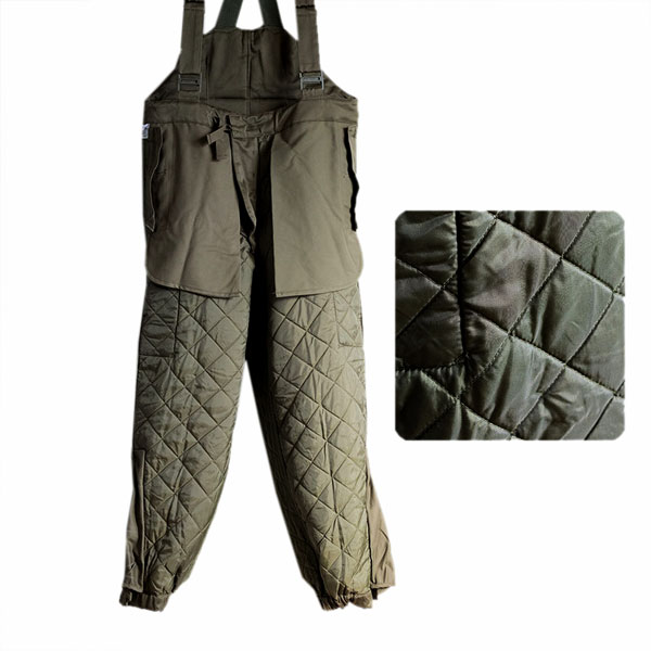 オーバーオールタイプのパンツで、裏地が全てキルティング仕様なので、風を通さず保温性バツグン。