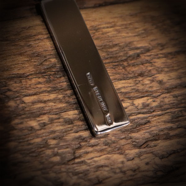 下のプレートには、小さなタガネで表情を付けをし、硫黄等を使い黒く燻しを施します。