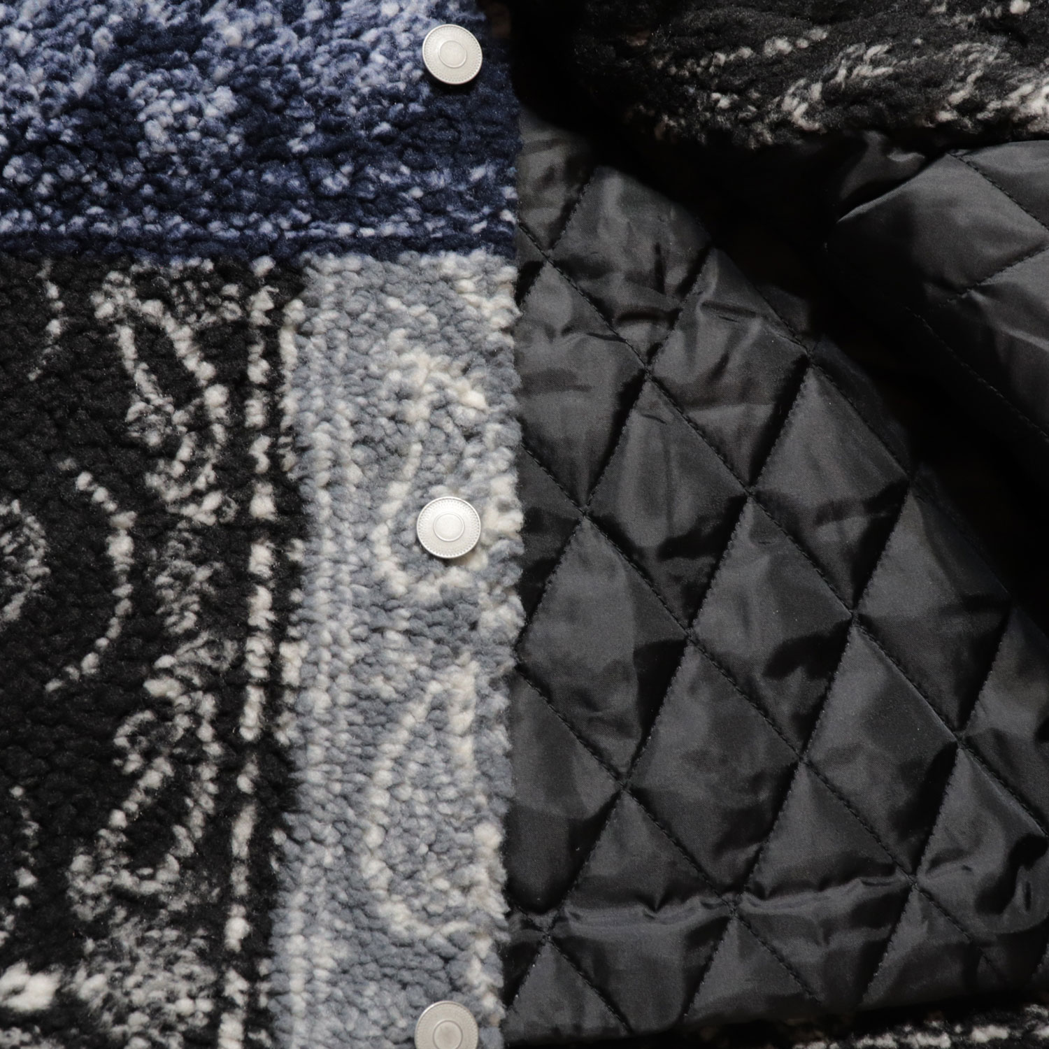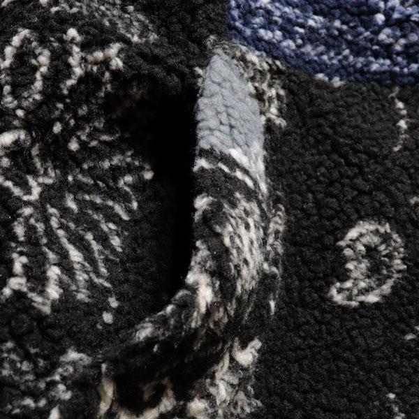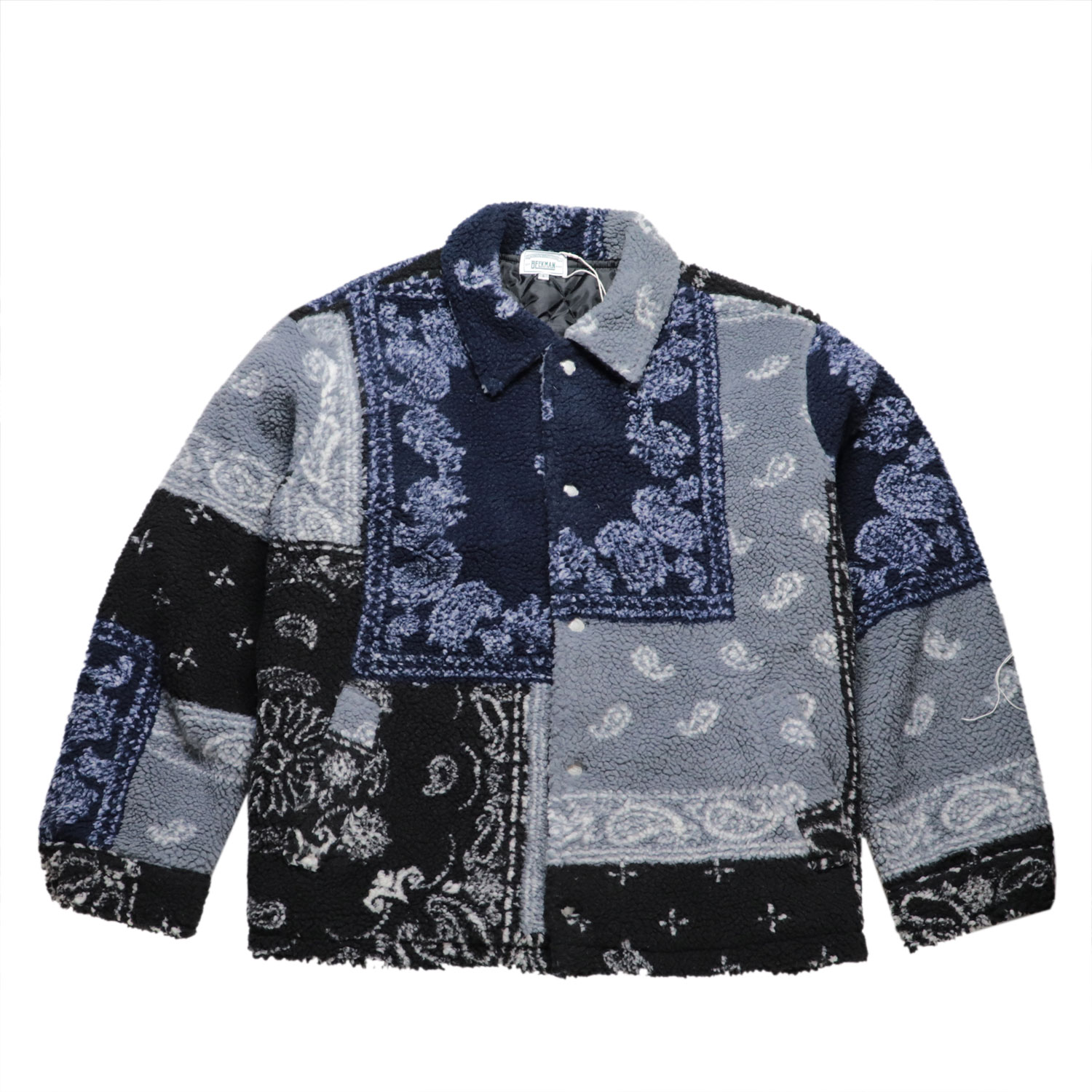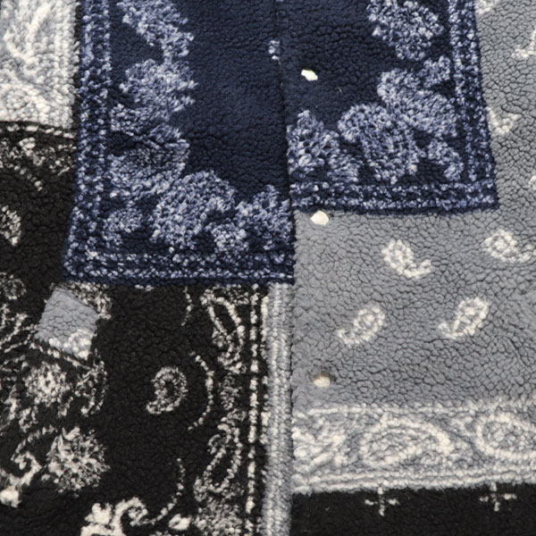 ペイズリーパターンをパッチワークにデザインした、ボアジャケット。